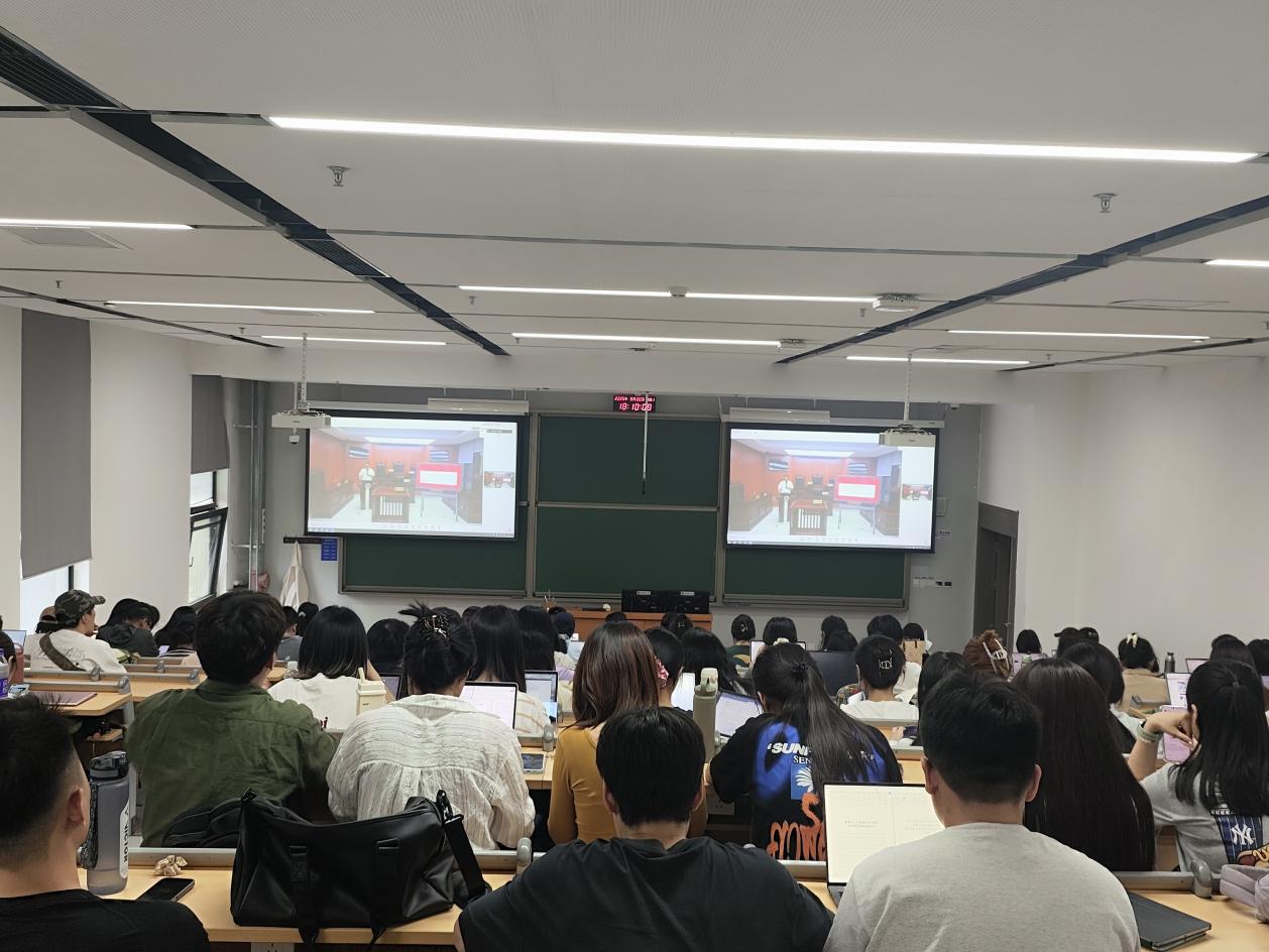 伴随着清脆的法槌声,模拟法庭环节正式开始。同学们认真演绎了“何发理受贿案”的庭审现场,控辩双方紧扣案件事实和法律规定展开激烈的辩论,充分展现了法学专业学生扎实的法学功底。通过对庭审活动的直观展示,与会同学更加深入地理解中央八项规定精神的丰富内涵和现实意义。