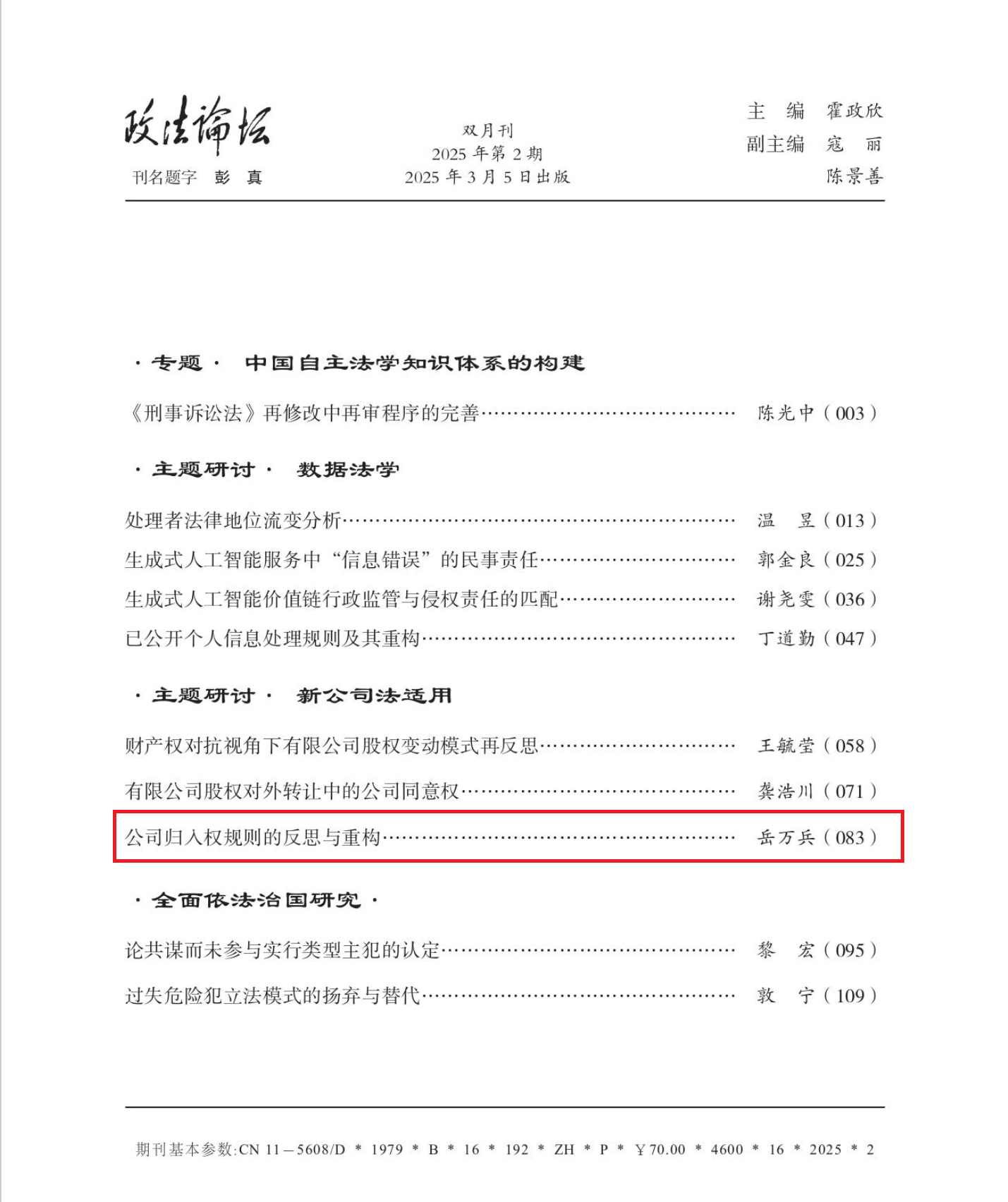 北理工必威西汉姆联副教授岳万兵在《政法论坛》发表文章