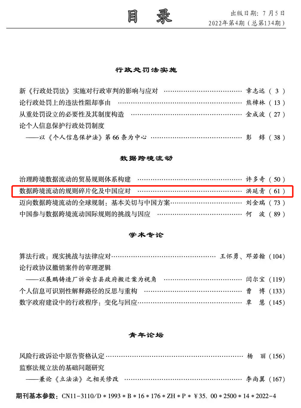 数据跨境流动的规则碎片化及中国应对. 行政法学研究,2022(04)