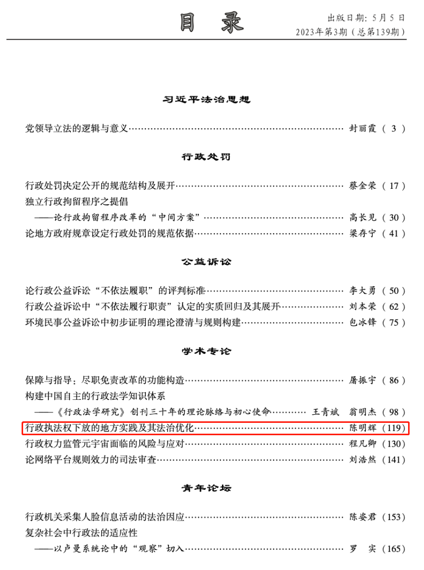 行政执法权下放的地方实践及其法治优化,行政法学研究,2023(03)
