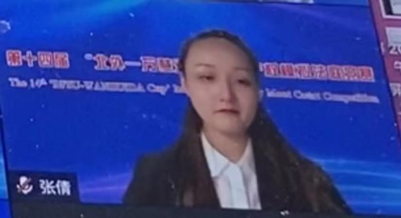 答辩方队员比赛中(左一21级研究生周维嘉同学,本场最佳辩手;右一21级本科生张倩同学)