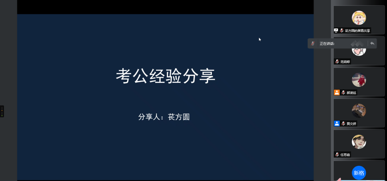 2020级诉讼法专业的李晨睿同学针对北京地区的国考、京选和京考做了相关经验分享,他重点围绕报岗的方法技巧和注意事项、笔试和面试的复习策略和时间进度以及如何获取相关信息进行了详细介绍,并且就北京法院系统的考情进行了一定的分析。他建议大家要丰富简历,合理规划,精心准备,勤加练习,保持良好心态。