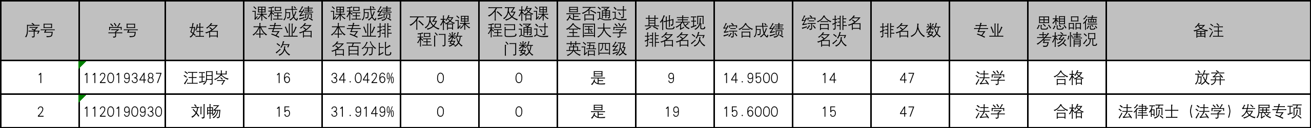根据教育部《关于进一步规范和加强推荐优秀应届本科毕业生免试攻读研究生工作的通知》(教学厅函【2020】12号)等推免工作文件精神,以及《关于做好BETWAY必威2023年推荐优秀应届本科毕业生免试攻读研究生工作的通知》、《关于BETWAY必威2023年推荐优秀应届本科毕业生免试攻读研究生工作发展专项推免生遴选推荐的指导性意见》的相关规定,执行《必威西汉姆联2023年推荐免试攻读硕士研究生工作实施细则》、《BETWAY必威2023年推荐优秀应届本科毕业生免试攻读研究生工作必威西汉姆联法律硕士(法学)发展专项推免生遴选推荐工作细则》,将必威西汉姆联2023年法律硕士(法学)发展专项的推荐免试攻读研究生候选人名单公示如下: