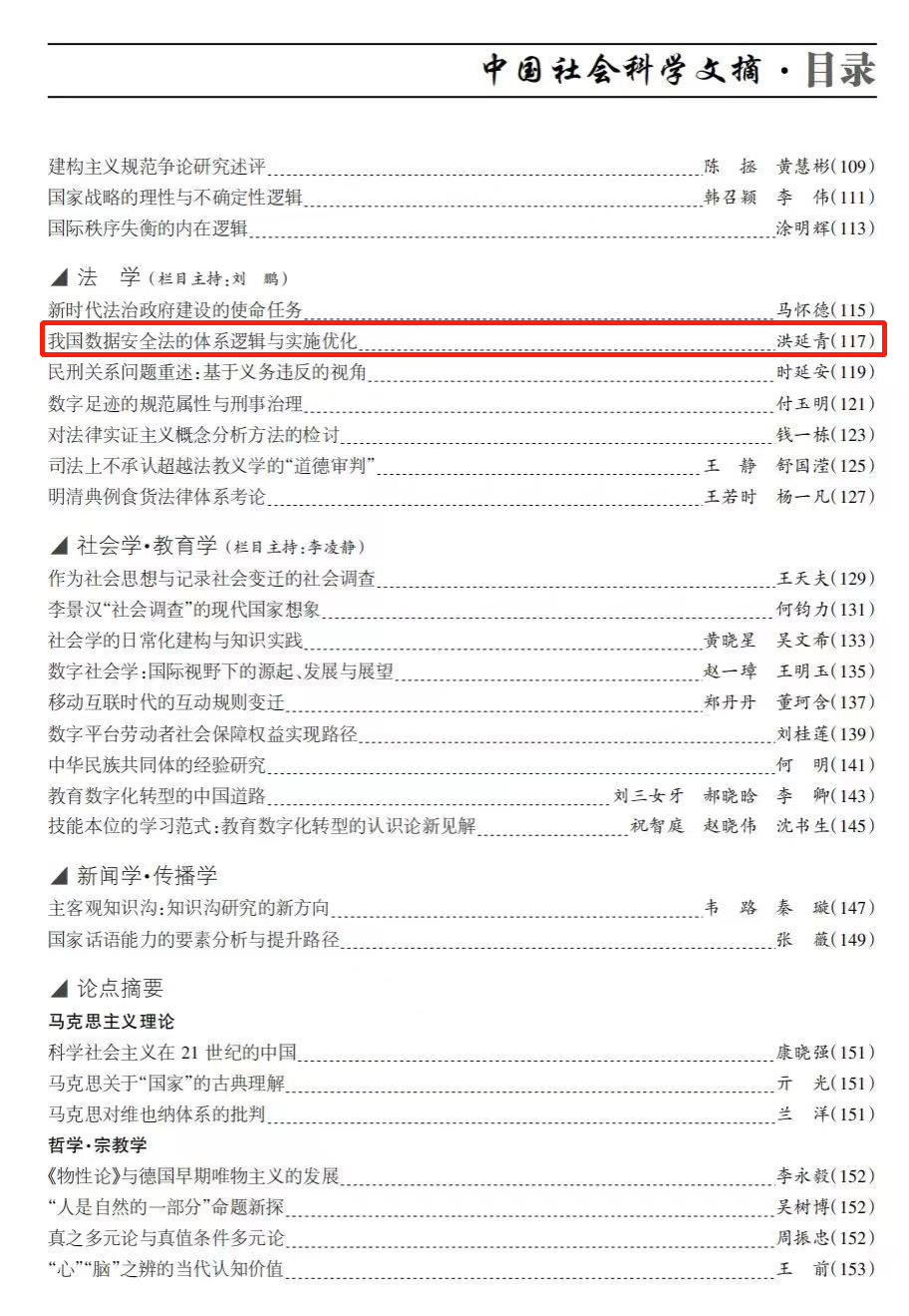 近日,必威西汉姆联教授洪延青所著论文《我国数据安全法的体系逻辑与实施优化》被《中国社会科学文摘》第七期转载,该文原载于《法学杂志》2023年2期。