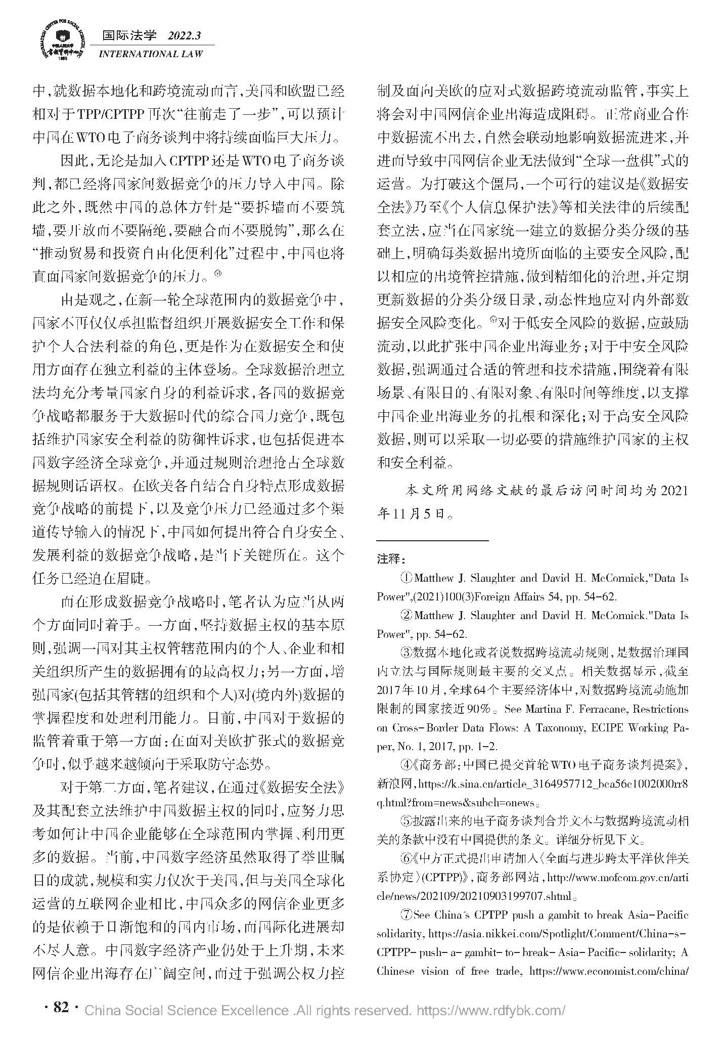 数据竞争的美欧战略立场及中国因应——基于国内立法与经贸协定谈判双重视角,中国人民大学复印报刊资料《国际法学》2022年03期全文转载。(原文载于《国际法研究》(京),2021.6.69~81)