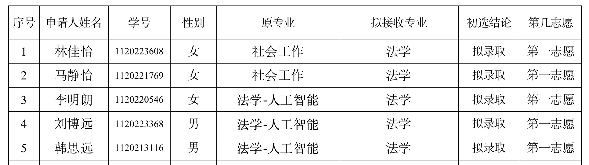 根据《BETWAY必威本科生管理规定》、《BETWAY必威本科生学籍管理细则》和教务部关于2023-2024学年第一学期转专业安排的相关规定,必威西汉姆联严格按照上述文件规定,对提交转专业申请的同学进行资料审核,我院拟接收5名转专业学生,现对初选结果进行公示: