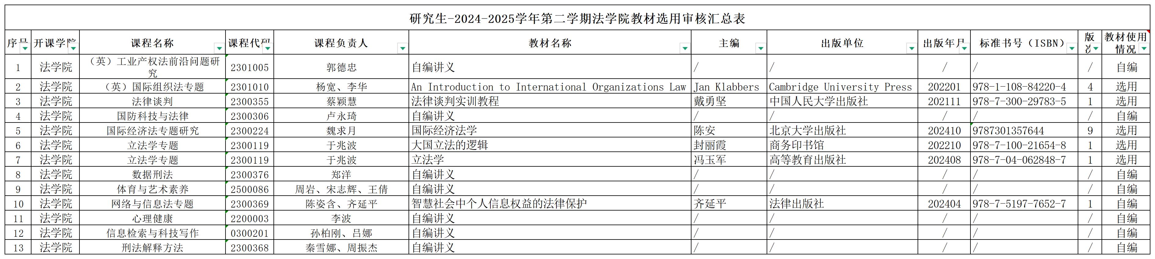 研究生-2024-2025学年第二学期必威西汉姆联教材选用审核汇总表