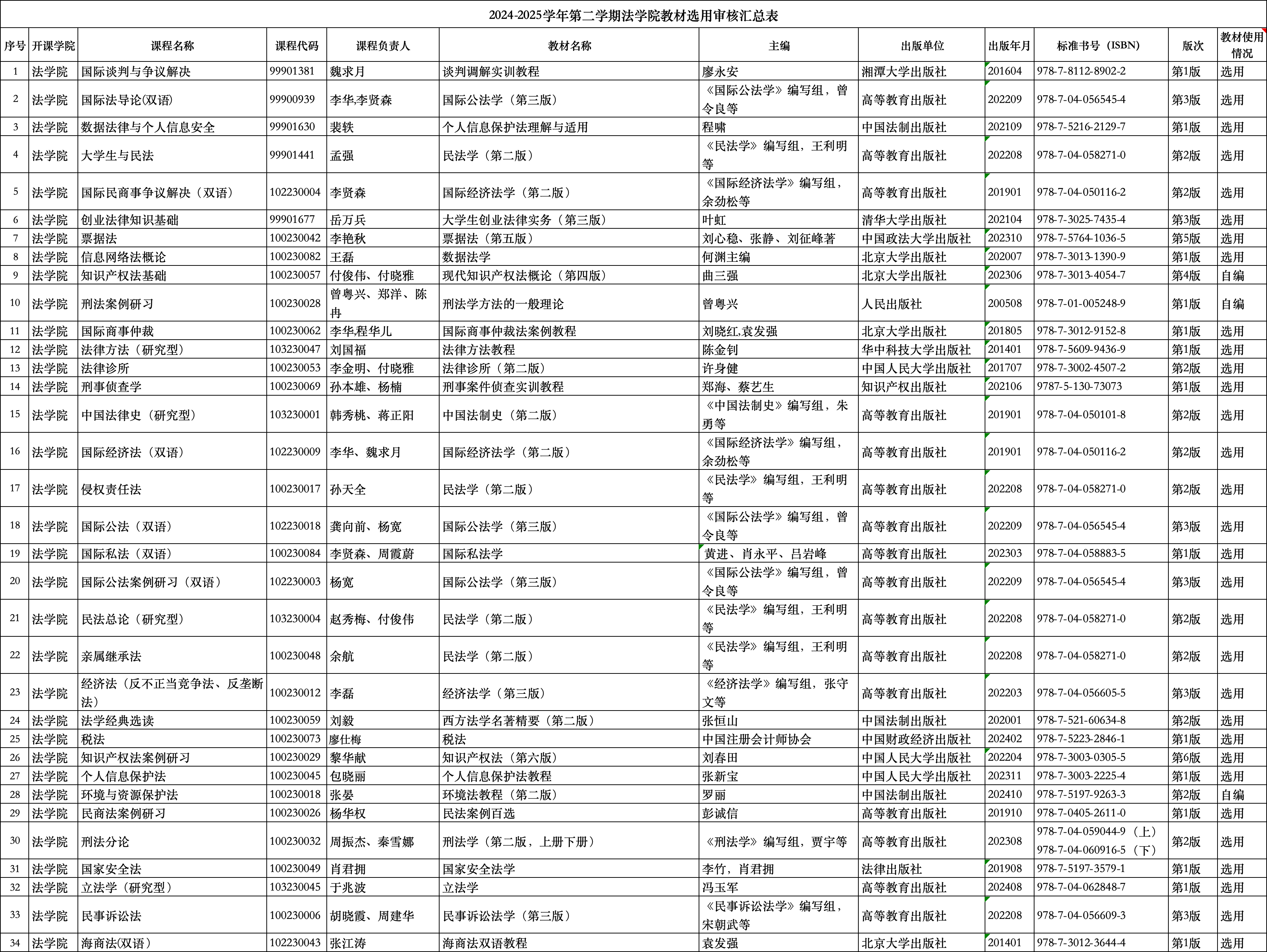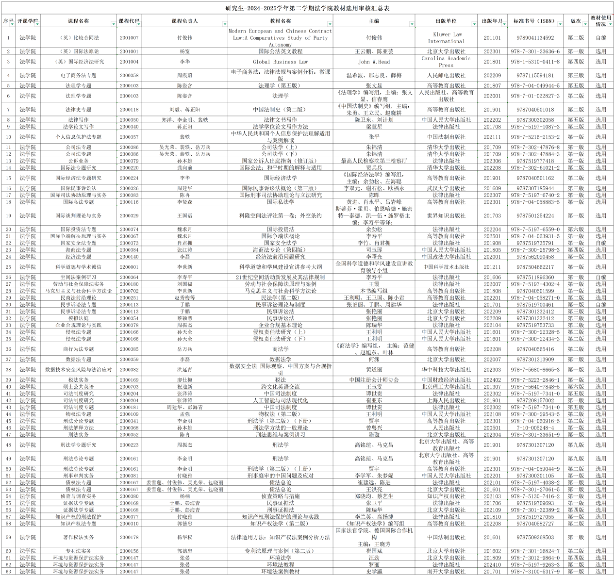 研究生-2024-2025学年第二学期必威西汉姆联教材选用审核汇总表
