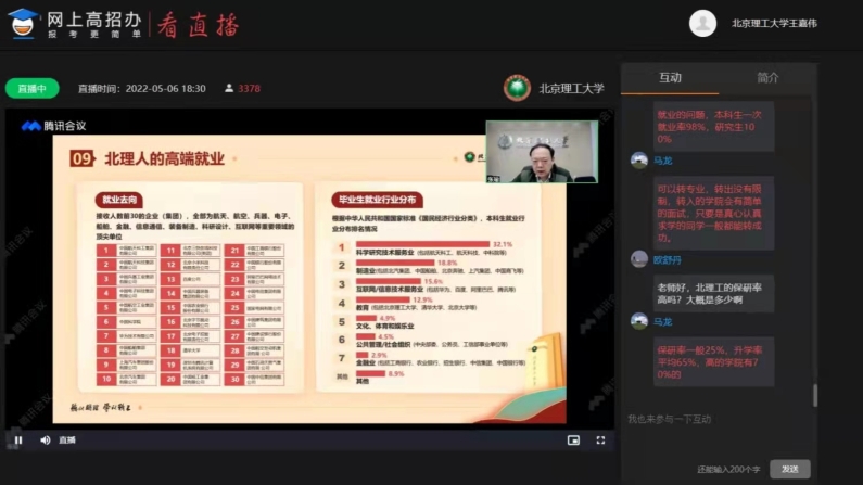 马晓龙全程在线上针对考生和家长所关心的问题做了解答。同学与家长在线上参与了留言互动。