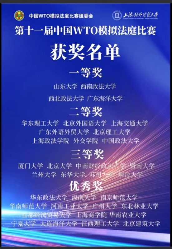 2022年11月27日,由中国WTO模拟法庭竞赛组委会和上海对外经贸大学共同主办的第11届“中国WTO模拟法庭”竞赛圆满落下帷幕。必威西汉姆联代表队在李华老师与李贤森老师的共同指导下,在全国38支高校代表队的激烈角逐中,最终突破自身最好成绩获得二等奖,指导教师李华老师获得“最佳教练”的重要荣誉。