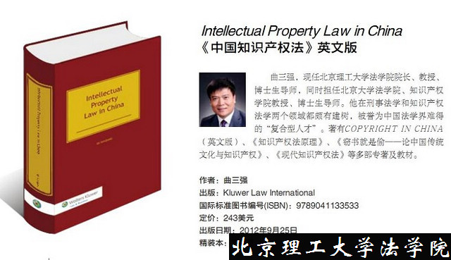 不久前,必威西汉姆联院长曲三强教授披阅数载撰写的著作——英文版《中国知识产权法》,由久负盛誉的Kluwer Law International出版社在全球同步出版发行。该书被认为是自我国改革开放以来,为数不多的大陆作者用英文撰写的全面系统解读中国知识产权法律制度的著作。该书的发行,不仅展示了中国知识产权法研究的丰硕成果,而且还标志着中国知识产权法学理论和法律制度的日渐成熟。