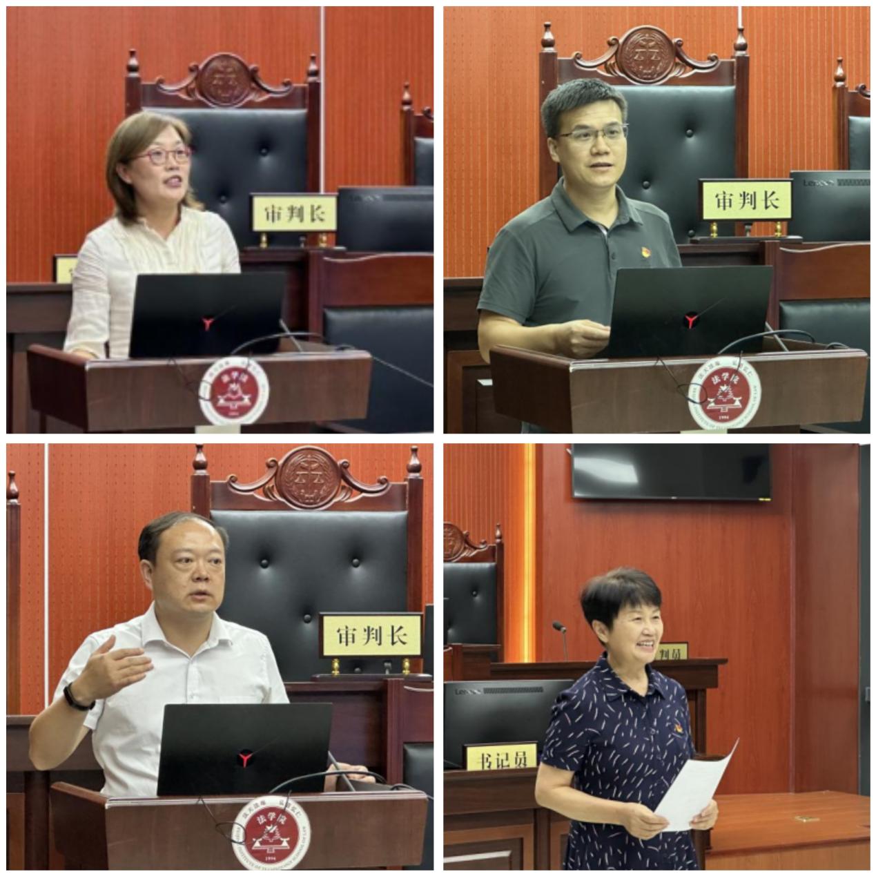第三部分为师生交流感悟。模拟法庭结束后,到场嘉宾、指导老师对此次活动发表意见或提出建议。李华肯定了“赤色法槌”模拟法庭在民事法律流程、选题、原被告代理人的陈词、答辩等方面取得了很大进步,并从模拟法庭如何展开的角度提出建议,指出庭审中诉讼代理人、审判长和审判员各自应当注意的问题。马晓龙指出党建教育环节需要增强故事性,模拟法庭环节需要增强对抗性。张瑜指出,一方面要加强党建教育环节和模拟法庭环节的衔接,对选择案件的典型性需要进行解释,另一方面也要突出活动的思想性和专业性,并增强模拟法庭环节的真实性。韩宝玲从模拟法庭活动的演变的过程肯定了赤色法槌活动的积极意义,并且从活动的衔接、人员着装、神态语言等方面等方面提出建议和鼓励。