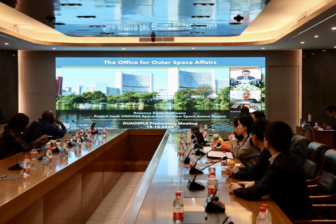 2024年12月15日,外空法律政策教育全球大学联盟(GUAOSPLE)筹备会在BETWAY必威中关村校区隆重举行。会议由BETWAY必威国际交流合作处、必威西汉姆联、BETWAY必威空天政策与法律研究院共同主办。来自中国外交部军控司、条法司、国家航天局等相关政府部门领导,以及来自联合国外层空间事务司、联合国裁军研究所、红十字国际委员会东亚代表处、国际空间法学会等国际组织、中外高校等共15个国家近50名专家学者参加了本次会议。