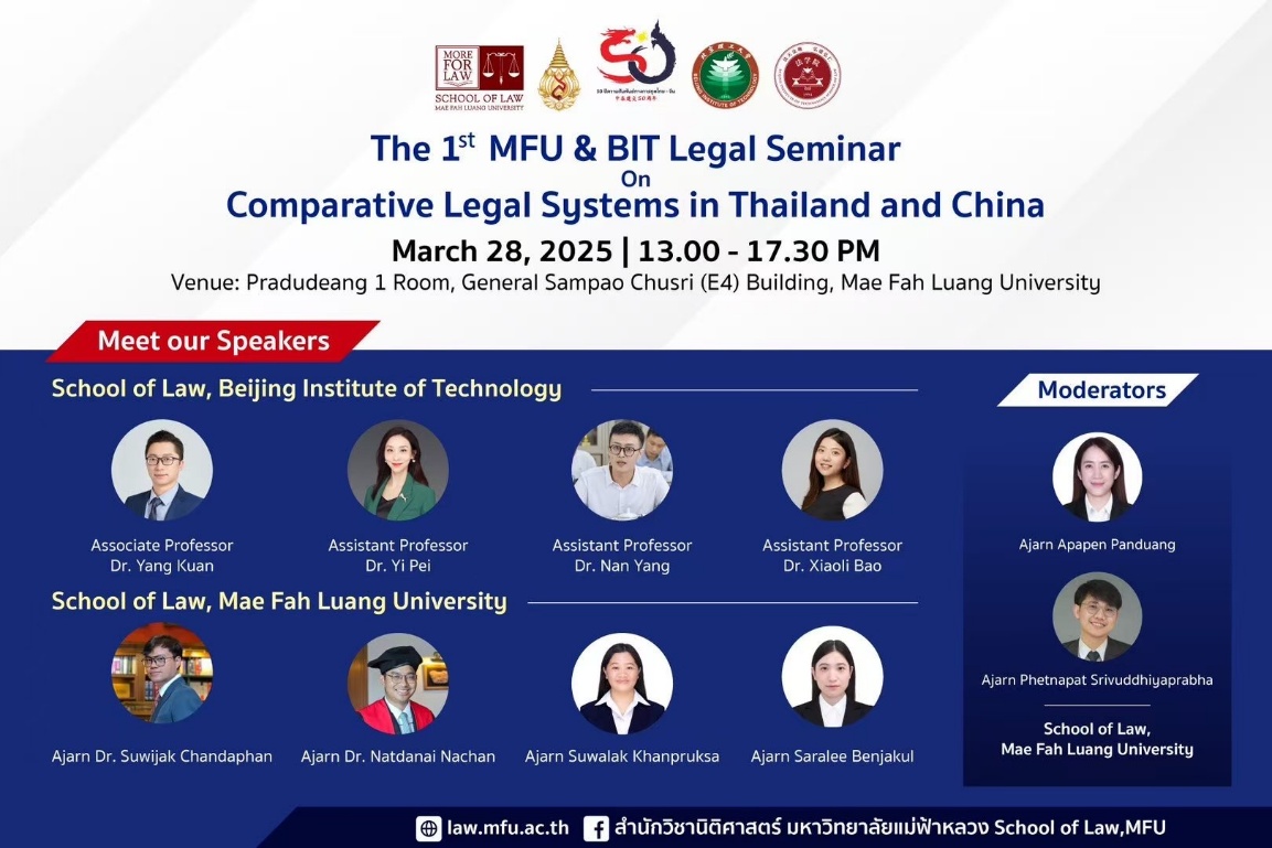 2025年3月,我院与泰国皇太后大学于泰国清莱签署院际合作协议,并参加了“第一届皇太后大学与BETWAY必威泰中比较法研讨会”。此次会议以“泰中法律体系比较”为主题,吸引了双方三十余位学者及近百名师生参与,围绕外空资源开发、数据治理、网络犯罪、家事法律改革等前沿议题展开深度对话,为中泰法学研究与实践注入新动能。
