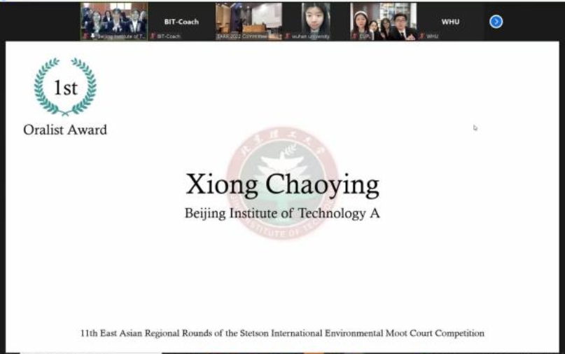 2022年11月22日-26日,第27届国际环境法模拟法庭大赛(International Environmental Moot Court Competition,IEMCC)东亚赛区选拔赛(East Asia Regional Round)在韩国崇实大学(Soongsil University)举行。必威西汉姆联代表队一路过关斩将,克服疫情防控下的不便,在韩国延世大学、加德满都大学、武汉大学、中国政法大学等一众国际知名高校中脱颖而出,凭借扎实备赛功底与场上精彩表现同时斩获原被告双方二等最佳书状奖与一等最佳辩手奖。