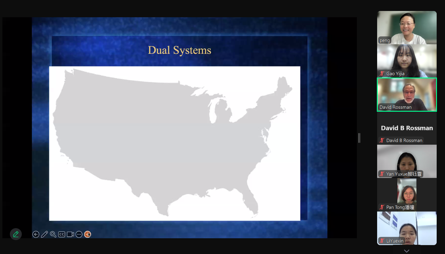 在为期9天的学习中,两位教授深入浅出地剖析了美国刑事司法制度的演进历程与现实情况。彭海青教授引领学生们细致研读全英文文献,围绕美国刑事诉讼程序、参与主体及公众评价等议题展开全面探讨,并巧妙融入比较法视角,激发学生们对中美刑事司法体系异同的思考;美国教授David Rossman则以其丰富的司法实务经验与生动的案例讲述,展现了美国刑事司法制度的独特之处,使学生们对美国刑事司法实务有了更加具象而细致的理解。
