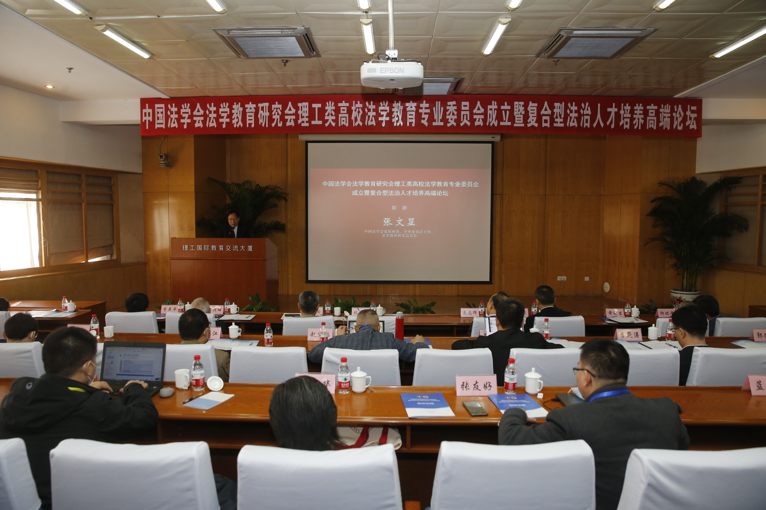 中国法学会党组成员、学术委员会主任、法学教育研究会会长张文显教授在开幕式上致辞。张文显代表中国法学会法学教育研究会向理工类高校法学教育专业委员会的正式成立表示热烈祝贺。他指出,理工类高校近年一直在探索法学教育的特点和路径,专业委员会的成立将进一步推动理工类高校法学人才培养工作的深化、拓展和创新。张文显会长提出,要借助专业委员会的成立,深入研究法学的常规教育与特色教育的关系,要利用理工类底色学校的优势传统,培养出复合型法治人才;要深入推进习近平法治思想进校园、进课堂、进学生头脑,用好《习近平法治思想概论》教材、讲好《习近平法治思想概论》,一定要进一步提高政治站位;要深入探讨法治与科技的深度融合,把我国特有的制度优势和明显的科技优势形成合力,推动社会主义法治国家和社会主义伟大强国。他最后指出,复合型法治人才培养是为党分忧、为国育才的举措,要深入探索新时代新发展阶段法治人才培养的模式、方法问题,积极回应习近平总书记开创未来的伟大号召。
