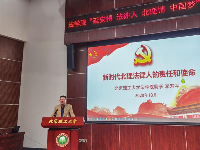 李寿平以“新时代北理法律人的责任和使命”为主题进行党课讲授。首先,他结合北理工必威西汉姆联的发展历程和学科建设,以爱国、爱党、爱校、爱院为中心,强调北理工学子应当了解学校和学院历史,强化对学校、学院的认同感,提升获得感和幸福感。他指出,作为北理法律人,应当瞄准时代需求和国家需求,以专业学科为基础,扎实学习法律与科技知识,背靠北理工特色优势科技,成为通晓智能科技、精通法律的复合型法治人才,在全面推进依法治国新时代中,为建设中国特色社会主义法治体系、建设社会主义法治国家贡献自己的一份力量。