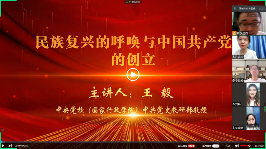 实践团首先集体学习了中共中央党校(国家行政学院)中国党史教研部王毅教授的《民族复兴的呼唤与中国共产党的成立》主题党课。王毅教授通过中国共产党创立的背景、中国共产党的筹备与创立、中国共产党的创立意义三个角度论证了中国共产党是历史和人民的选择。
