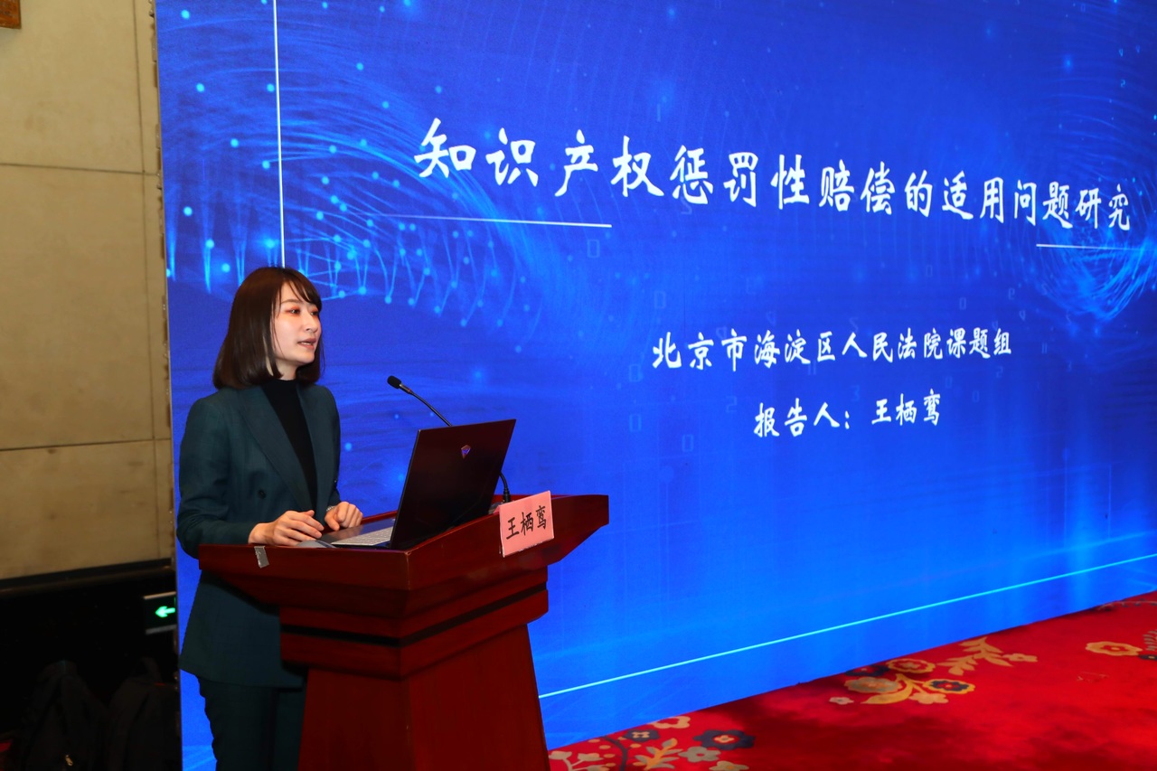 研讨会上,北京市海淀区人民法院法官王栖鸾代表课题组发布《知识产权惩罚性赔偿的适用问题研究》调研报告。该报告分为“穷源溯流:知识产权惩罚性赔偿概述”“实证考察:知识产权惩罚性赔偿适用的现状检视”“路径探索:知识产权惩罚性赔偿规则的理解与适用”“诉讼提示:知识产权惩罚性赔偿的证据规则指引”四大部分。它结合近年已审结知识产权案件中与惩罚性赔偿直接相关的典型案例,从实证研究出发,对已有司法实践中惩罚性赔偿制度的适用规则进行提炼和总结。在此基础上根据《最高人民法院关于审理侵害知识产权民事案件适用惩罚性赔偿的解释》的具体内容,结合域外实践经验,对未来在知识产权案件中准确理解和适用惩罚性赔偿提出对策和建议,并对诉讼参与人更加高效地参与诉讼作出提示。