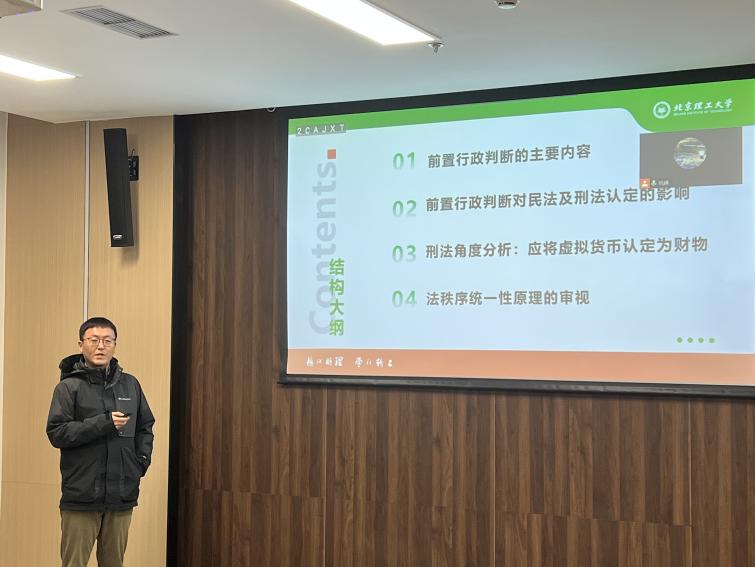 郑洋助理教授认为虚拟货币的刑法属性问题不是一个纯粹的刑法问题,而是必然受到前置法判断的影响,进而从前置行政判断的主要内容、前置行政判断对民法及刑法认定的影响等问题进行了详细介绍。