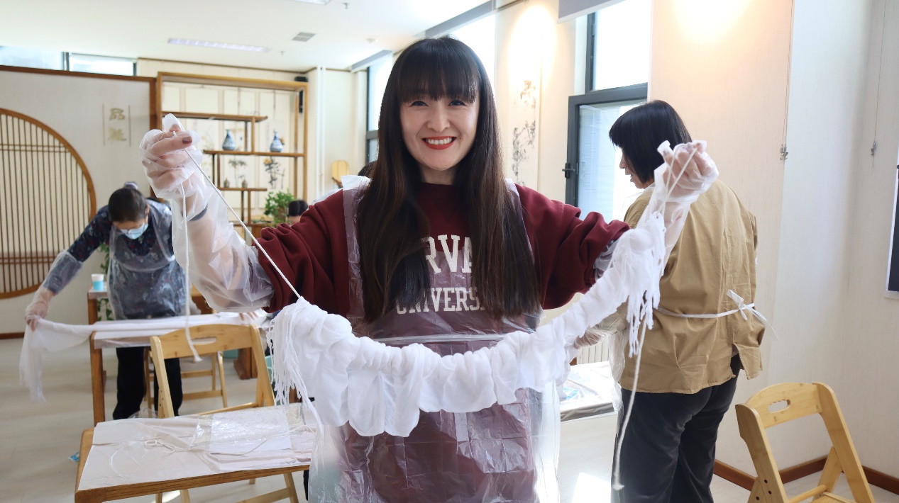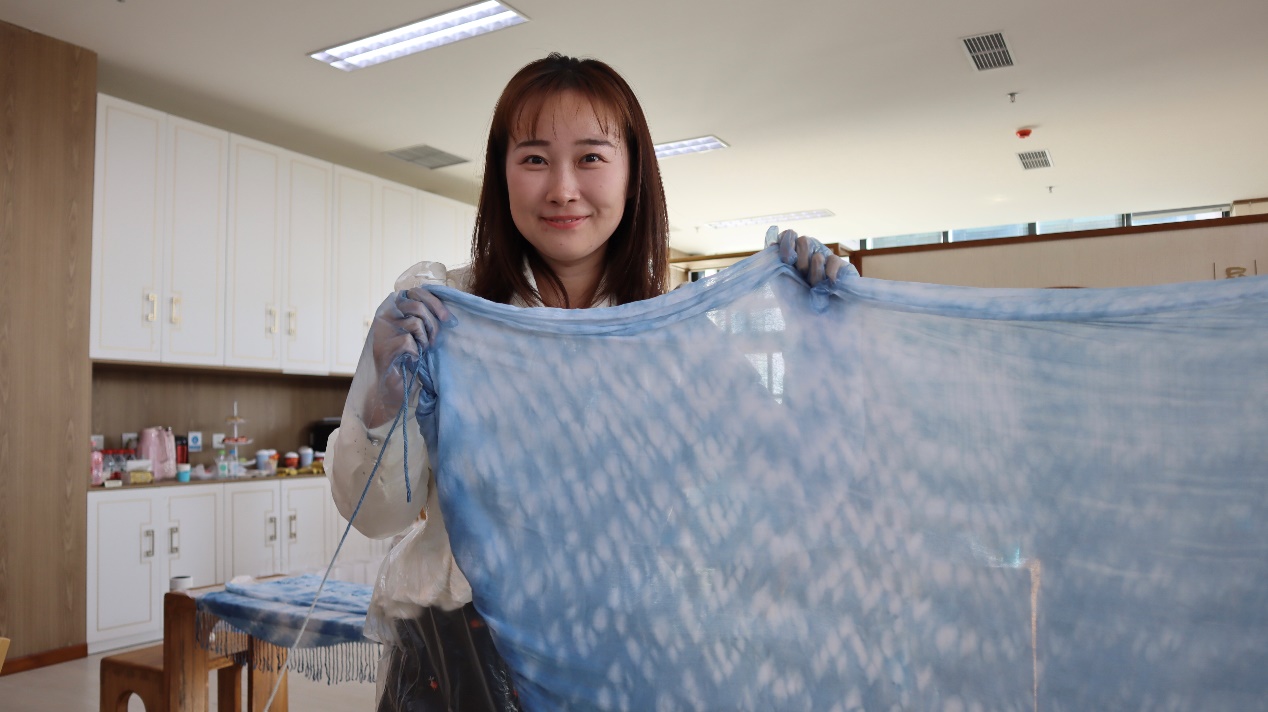 许多教职工表示,扎染体验让他们感受到了传统文化的独特魅力,通过折叠、捆绑、染色等步骤培养动手能力和创造力,激发了对传统工艺的兴趣,促进民族文化传承,同时也为日常紧张的工作生活增添了一份轻松与趣味,增进了同事之间的交流与合作。