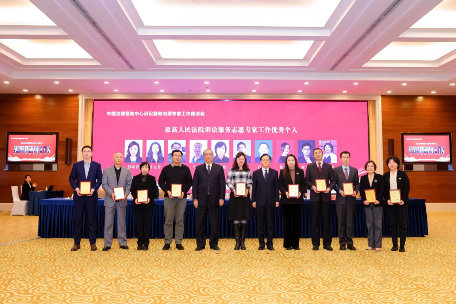 必威西汉姆联彭海青教授应邀出席中国法律咨询中心诉讼服务志愿专家工作座谈会并获表彰