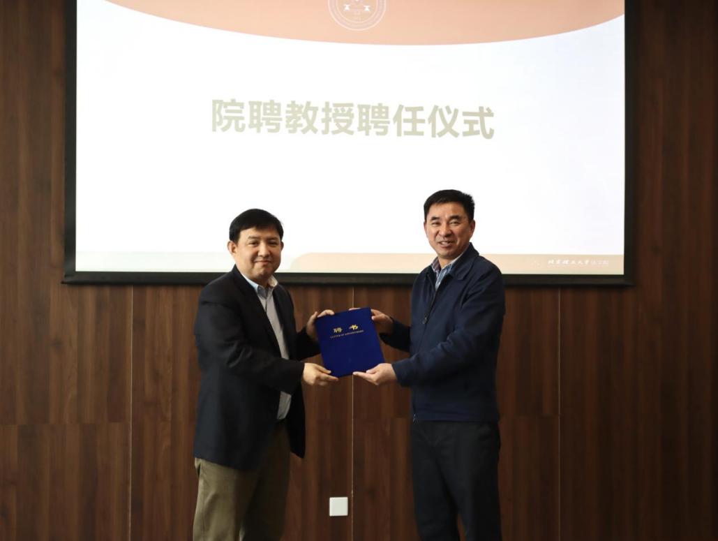 会议最后,举行院聘教授聘任仪式。李寿平为刘毅教授颁发聘任证书。