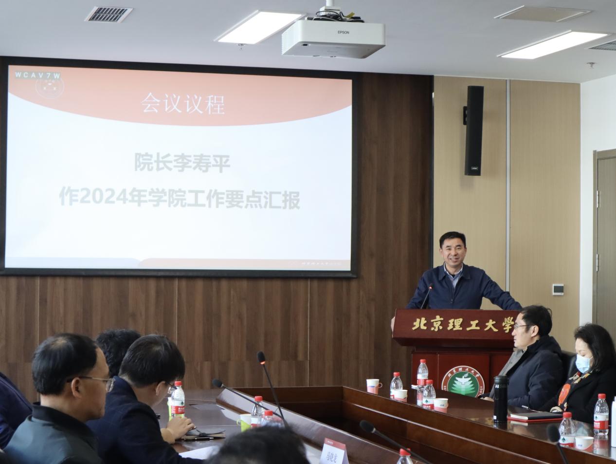 党委书记刘存福详细传达了学校《九届四次教代会十四届四次工代会暨2024年学校工作会》会议精神,结合学校工作会议对学院工作发展提出三点要求:一是加强理论武装,切实增强建设北理工特色一流必威西汉姆联的政治责任和使命担当;二是贯彻落实学校工作会议精神,教育引导全体师生以实际行动切实支撑学校高质量发展;三是提升治理水平,全面凝聚“双一流”建设的强大力量。