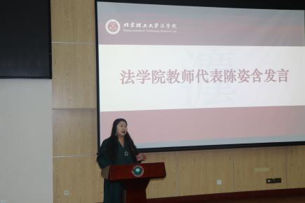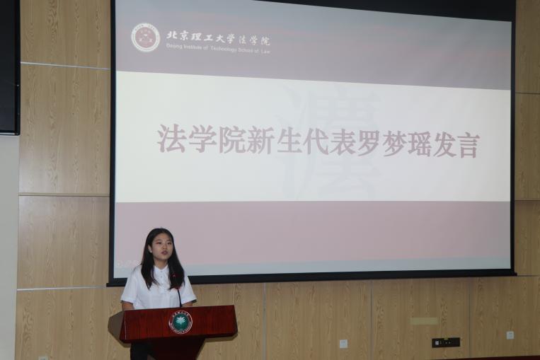 2023级罗梦瑶同学作为新生代表发言。她表达了对开启研究生阶段生活的激动与喜悦,立志做与国家和时代“同呼吸,共命运”,矢志报国,求真力行的“北理法律人”,立志做合格的、能服务国家和时代需求的高层次法治人才。