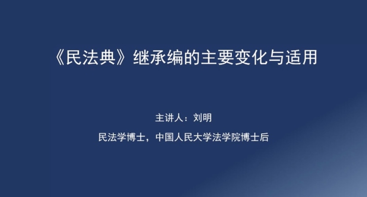 参加中国社会科学院大型民法典评注书继承编撰写工作的刘明博士,结合民法典及司法解释的规定,为同学们深入讲解了继承编的理论知识,他重点讲解了继承编的主要变化与适用,包括死亡顺序推定规则的理解与适用、遗产的范围、继承权的丧失与恢复、代位继承制度的调整、遗嘱形式的更新等,刘老师非常注重实际问题的分析,对于实践中具体的问题给出了有针对性的分析与解释。