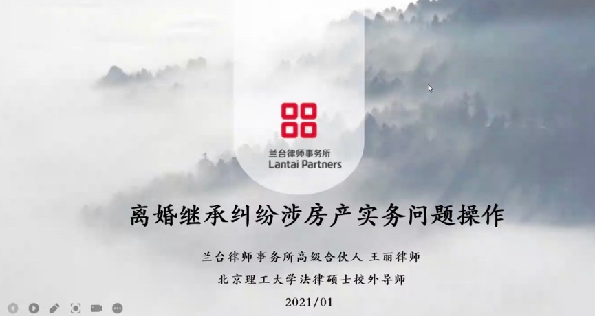 作为婚姻家庭领域资深专家的王丽律师围绕着离婚继承纠纷涉房产实务问题进行了课程讲授,她将实践中的问题分为婚姻中常见的房产争议以及如何做好房产传承两个部分,引导同学们训练案例分析思维模式,丰富了同学们的认知。