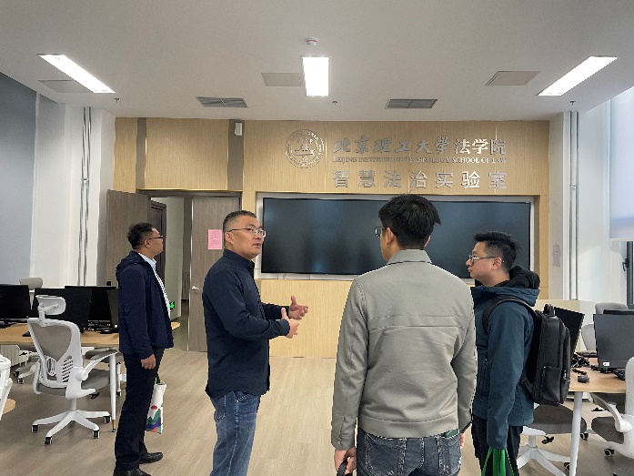 王福亮首先对山东农业大学公共管理学院一行的到访表示热烈欢迎,并引领来宾参观了我院模拟法庭实验室、智慧法治实验室,并就实验室建设、实验室管理和利用、法律实务型人才培养等方面进行了介绍与交流。