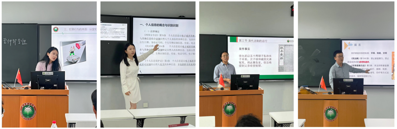 活动过程中,四位青年教师精心准备,认真设计,结合自己的研究方向和教学目标进行选题,秦雪娜以《犯罪行为的认定方法》为题,包晓丽以《个人信息保护法》为题,蒋正阳以《清代法制的运行》为题,郑洋以《刑法中的虐待罪》为题进行现场讲演。在20分钟的现场授课演示中,四位老师以饱满的精神面貌,扎实的教学功底,创新的教学方法,生动而富有感染力的语言表达展示了各自的教学基本功和独特风采。