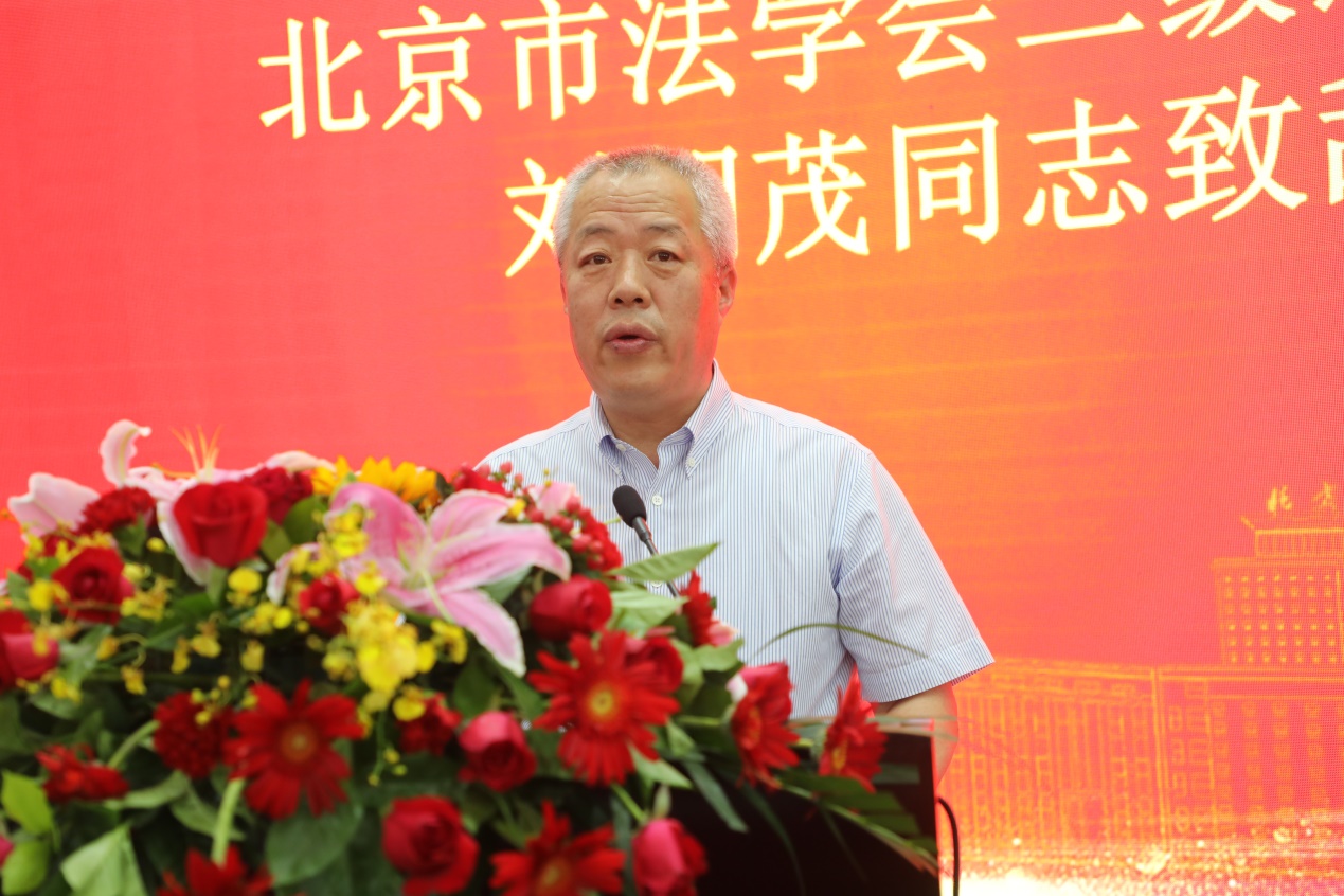 北京市法学会二级巡视员刘朝茂致辞。刘朝茂同志指出,研究会要紧紧围绕国家十四五规划,坚持正确政治方向,做好机制建设和做好成果转化,为首都社会治理创新做出应有的贡献。