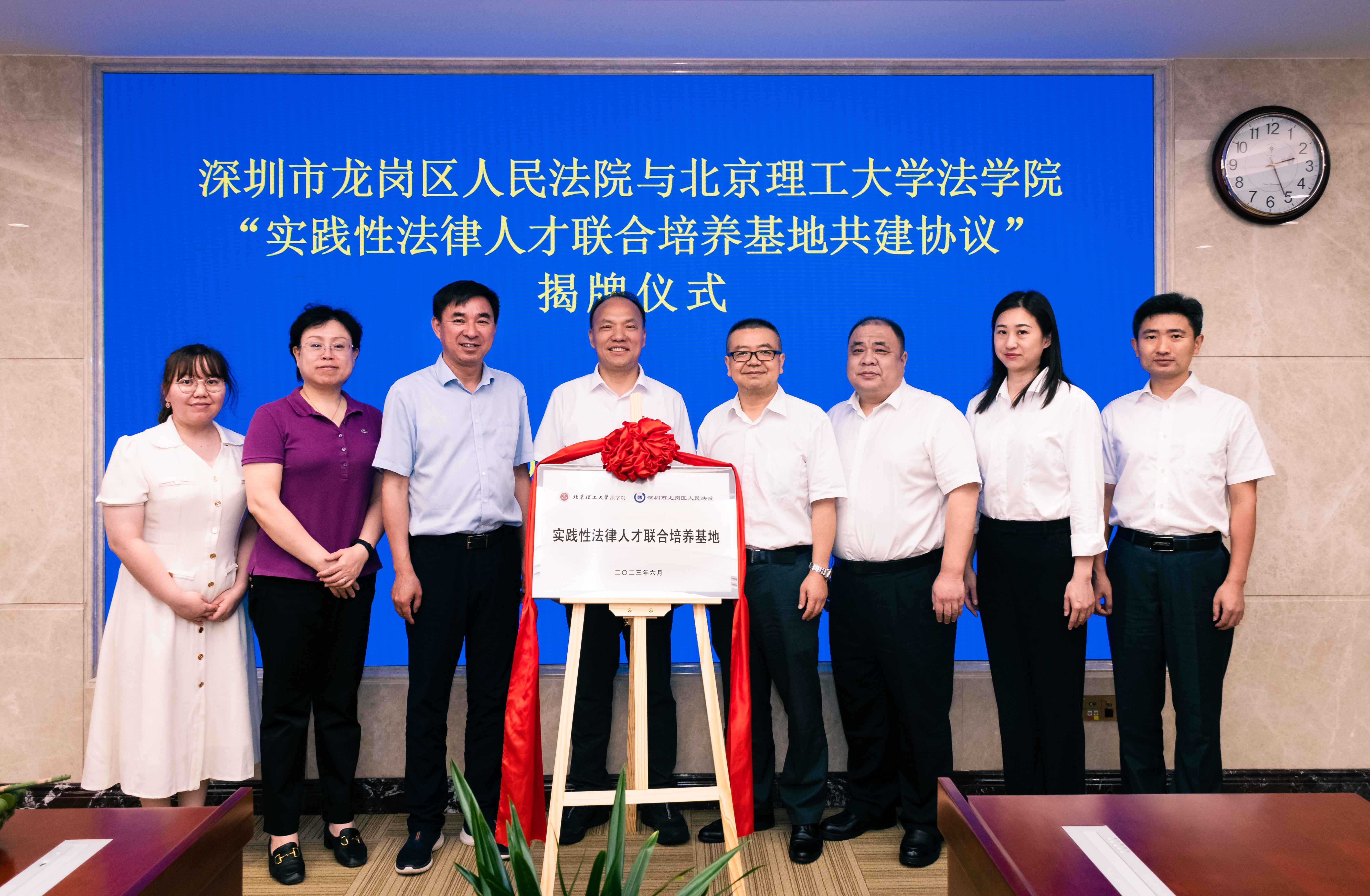 为了落实中共中央办公厅、国务院办公厅2023年2月26日印发的《关于加强新时代法学教育和法学理论研究的意见》,积极探索学校和司法实践部门联合培养法律职业型人才的途径,2023年6月15日,必威西汉姆联与深圳市龙岗区人民法院举办“实践性法律人才联合培养基地共建”调研座谈会,并进行了签约揭牌仪式。