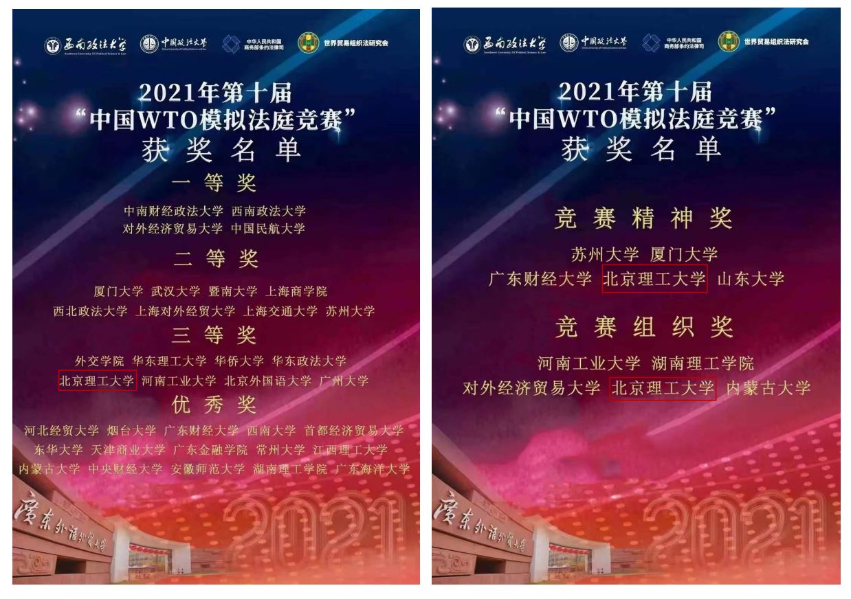 北理工必威西汉姆联代表队在第10届“中国WTO模拟法庭”竞赛中获佳绩