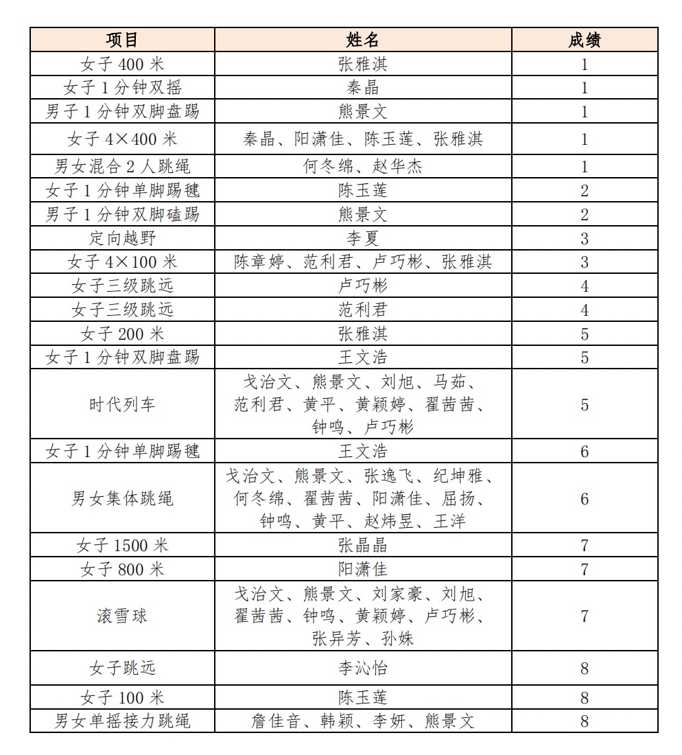希望师生们不断超越自我,顽强拼搏,继承和发扬体育精神!