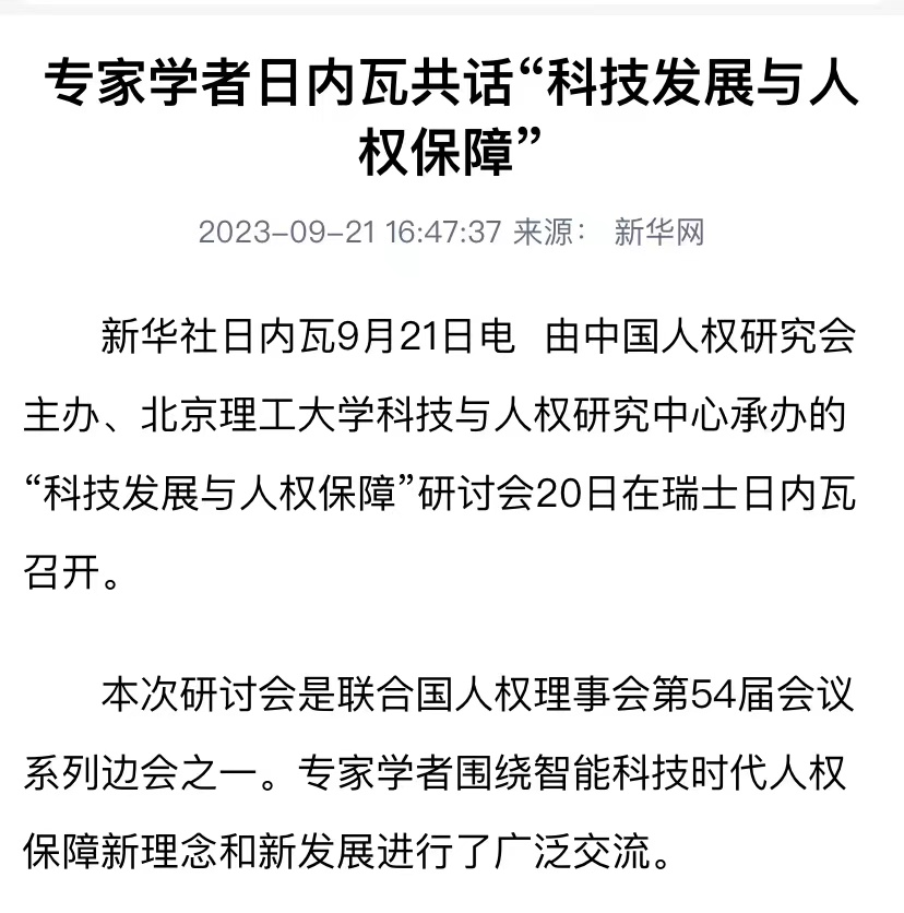 【新华社】专家学者日内瓦共话“科技发展与人权保障”