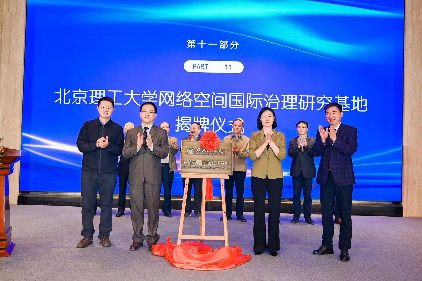 最后,进行了BETWAY必威网络空间国际治理研究基地揭牌仪式,与会嘉宾进行了揭牌及合影。