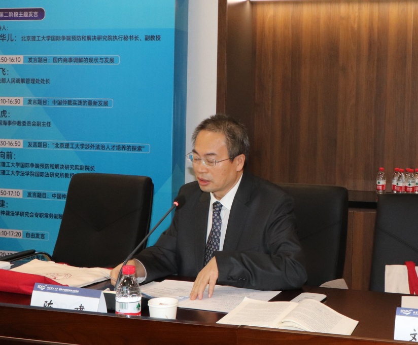 2021年10月31日,第一届国际争端预防和解决高端论坛暨“后疫情时代中国国际商事争端预防与解决的新发展”研讨会在我校良乡校区举行。本次论坛由我校国际争端预防和解决研究院、国际商事争端预防与解决组织秘书处主办。论坛采取线上线下相结合的方式,来自中国贸促会、中国海事仲裁委员会、司法部、科研院所等专家共聚一堂,共同探讨国际商事争端预防与解决的前沿议题。