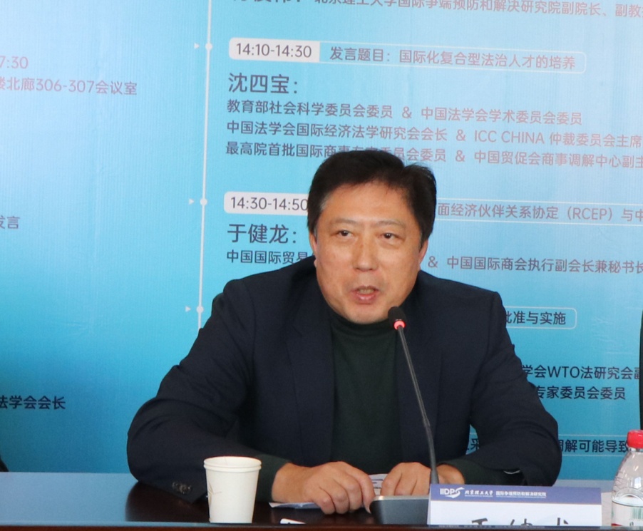 中国国际贸易促进委员会秘书长、中国国际商会执行副会长兼秘书长、国际商事争端预防和解决组织理事长、BETWAY必威国际争端预防和解决研究院专家咨询委员会副主任委员于健龙针对“区域全面经济伙伴关系协定(RCEP)与中国经贸的发展”提出了自己的观点。他指出RCEP对我国的重要性,详细的厘清了RCEP对中国经贸的发展的促进作用,并提出了RCEP的十大亮点和三个重大意义。从全球来看,RCEP提正了各国在疫情影响下全球经济不确定性中的信心,回击了经济保护主义、单边主义;从区域来看,对贸易自由化、便利化具有重大利益。同时,考虑到区域全面经济伙伴关系协定对中国的发展至关重要,从我国层面来说,对于未来我国加入CPTPP也起到了重要的促进和推动作,同时对我国的仲裁和调解也提供了巨大的市场和前所未有的契机。