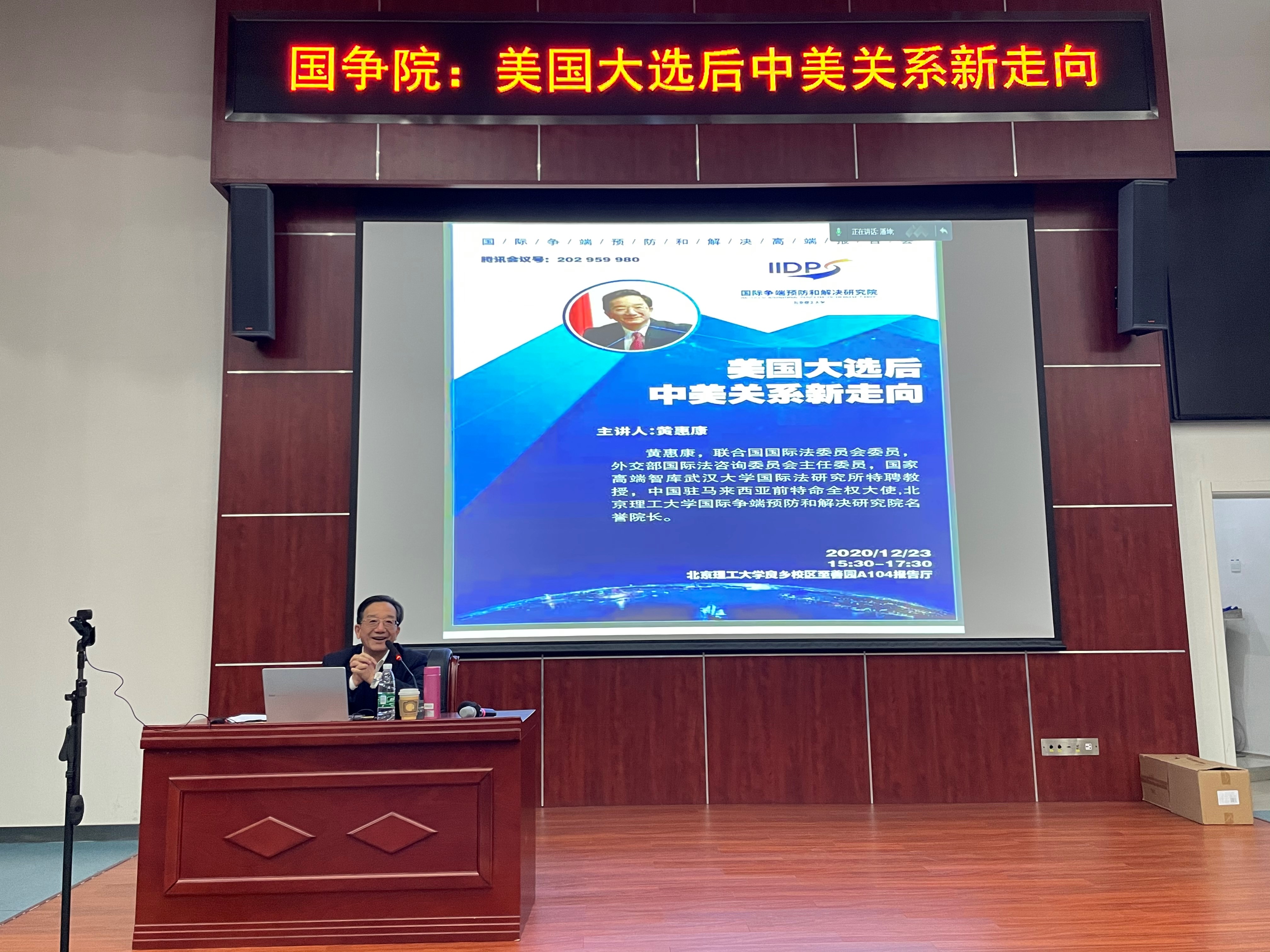 联合国国际法委员会委员国争院名誉院长黄惠康先生作“美国大选后的中美关系新走向”报告2020-12-28 -