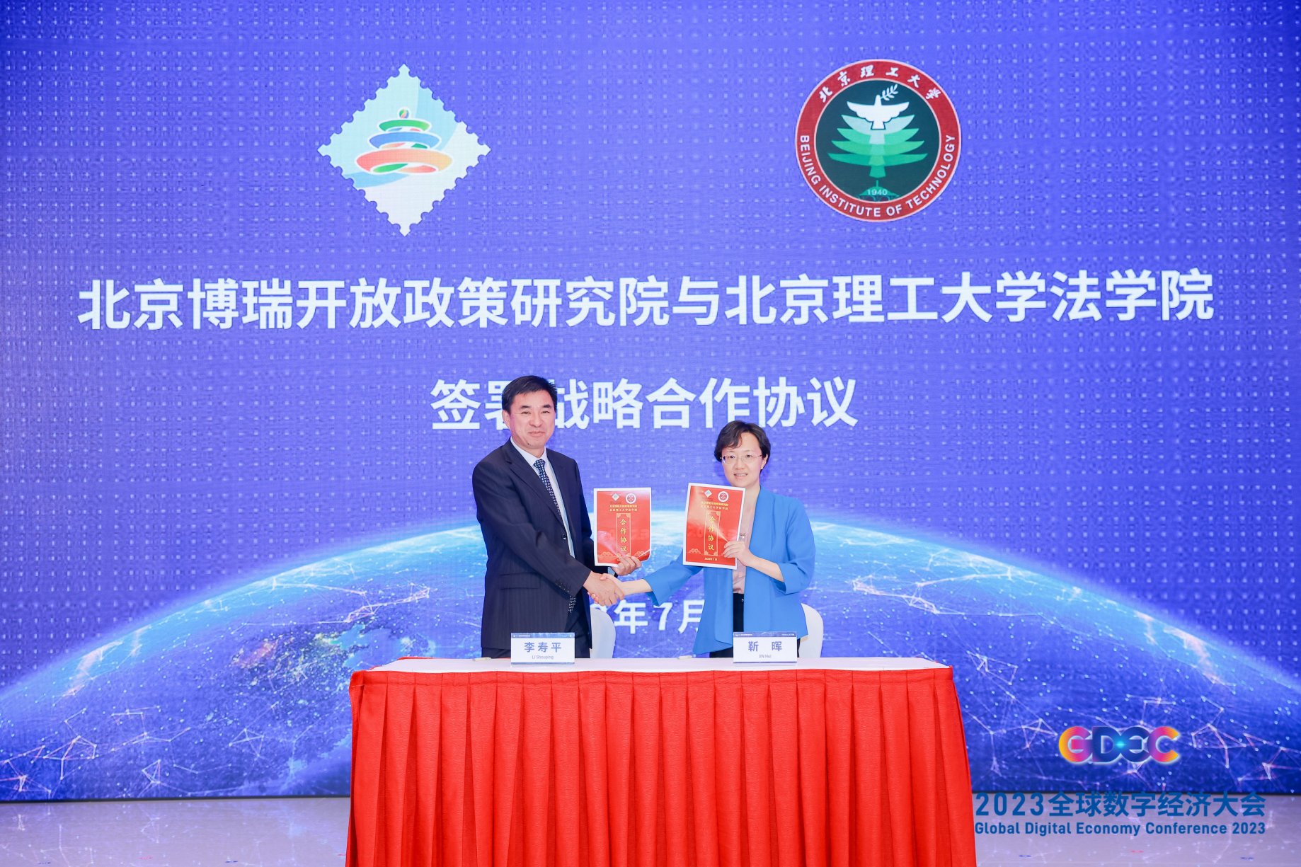 2023全球数字经济大会闭幕式于2023年7月7日下午在国家会议中心举行。必威西汉姆联与北京博锐开放政策研究院在闭幕式共同签署了合作共建协议,此后双方将就网络空间全球治理的研究和人才培养开展合作。
